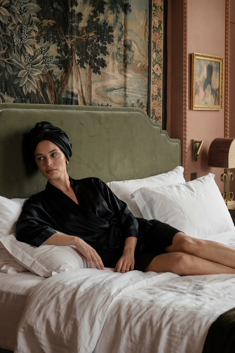 Wie wir schlafen, wirkt direkt auf die Regeneration von Haut und Haaren. Deshalb empfehle ich Seidenhauben – sie unterstützen die nächtliche Pflege, schützen empfindliche Haut und verwandeln den Schlaf in ein wohltuendes, gesundheitsförderndes Ritual.