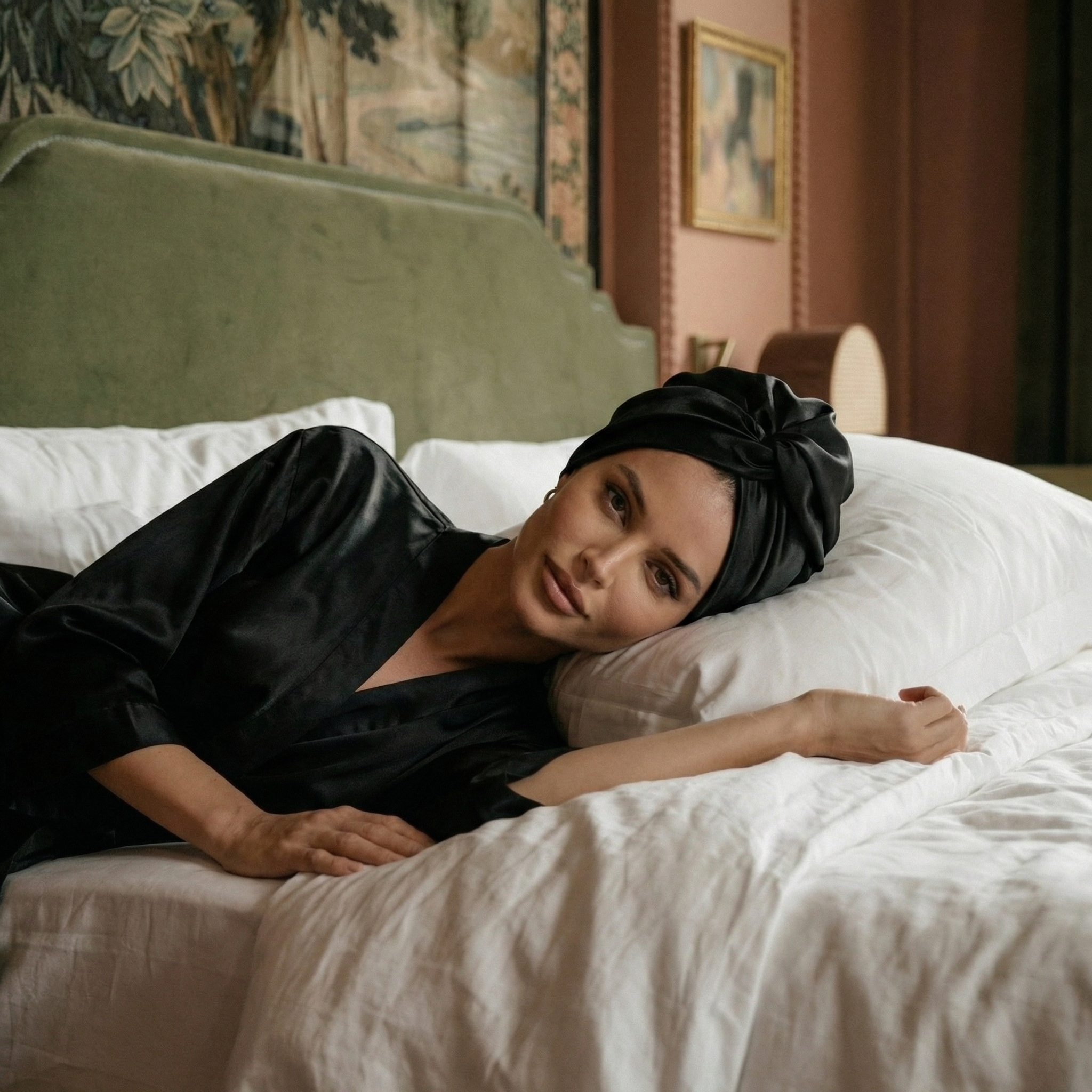 Wie wir schlafen, wirkt direkt auf die Regeneration von Haut und Haaren. Deshalb empfehle ich Seidenhauben – sie unterstützen die nächtliche Pflege, schützen empfindliche Haut und verwandeln den Schlaf in ein wohltuendes, gesundheitsförderndes Ritual.
