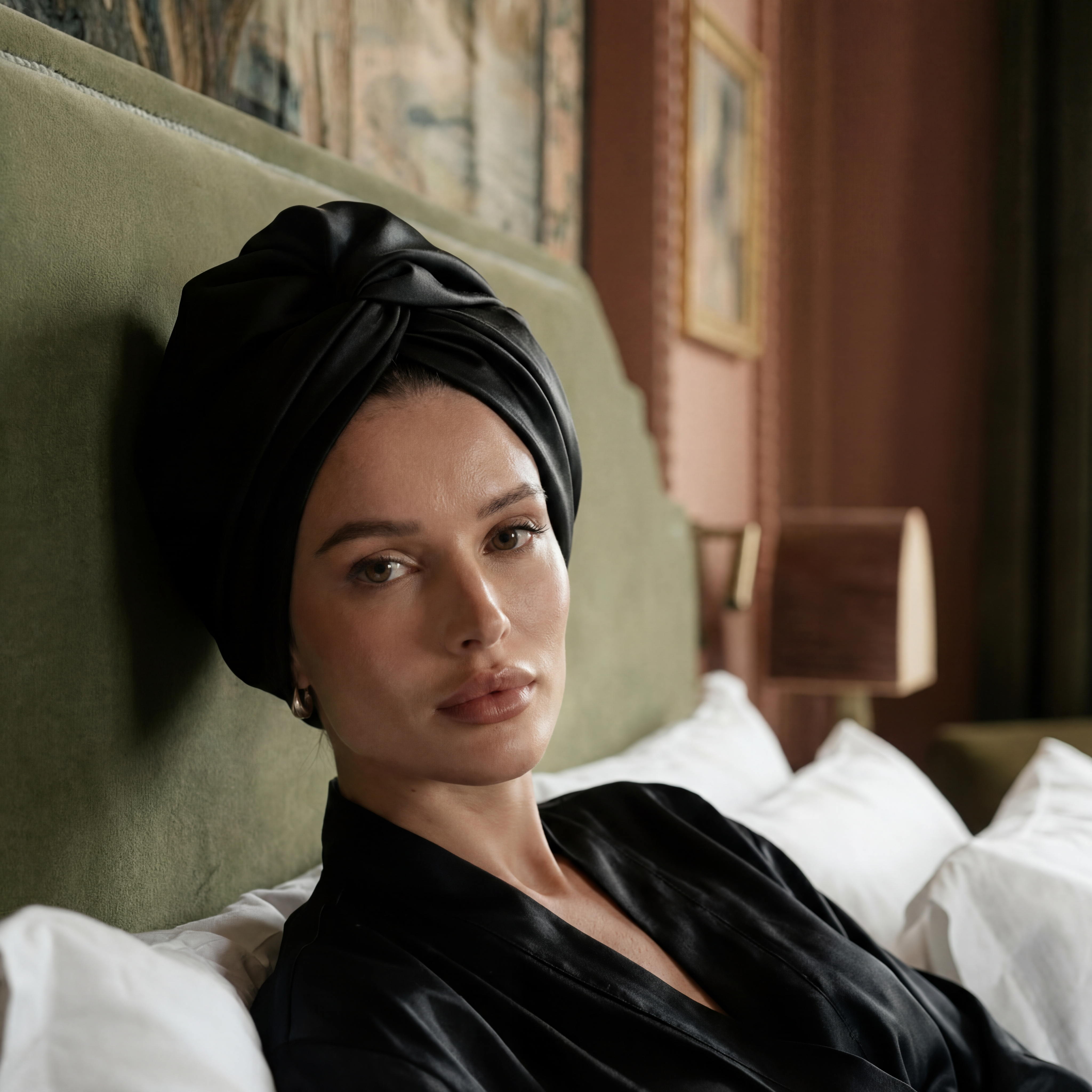 Die luxuriösen, waschbaren Seidenhauben umhüllen das Haar mit außergewöhnlicher Weichheit und schützen es sanft über Nacht. Sie reduzieren Reibung, bewahren Feuchtigkeit und helfen, die natürliche Struktur von Locken und Afrohaaren zu erhalten.